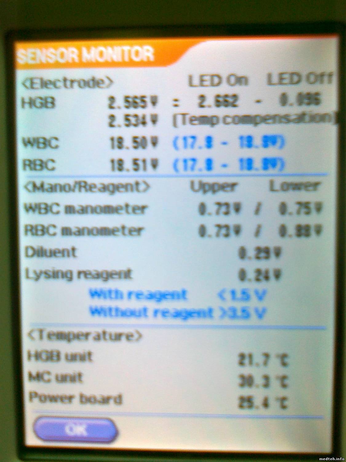 Один из МЕКов перестал подсчитывать RBC, вместо результата пустое место, ни 0 ни ошибки ни какого другого символа. до этого были ошибки BBL4 и level1. Перебрал все клапана, помыл волюметрические трубки, в двух клапанах 5 и 11 в измерительном блоке были порваные резинки по центру, заменил временно из клапанов 3,5 которые на промывке крокалывателя в закрытом режиме (вроде не течет пока не где). ошибки пропали но RBC как не подситывалось так и не считается. В чем может быть проблема, апарат пролазил весь, так и не решил проблему. в проверке электроники на RBC 1.6 .
