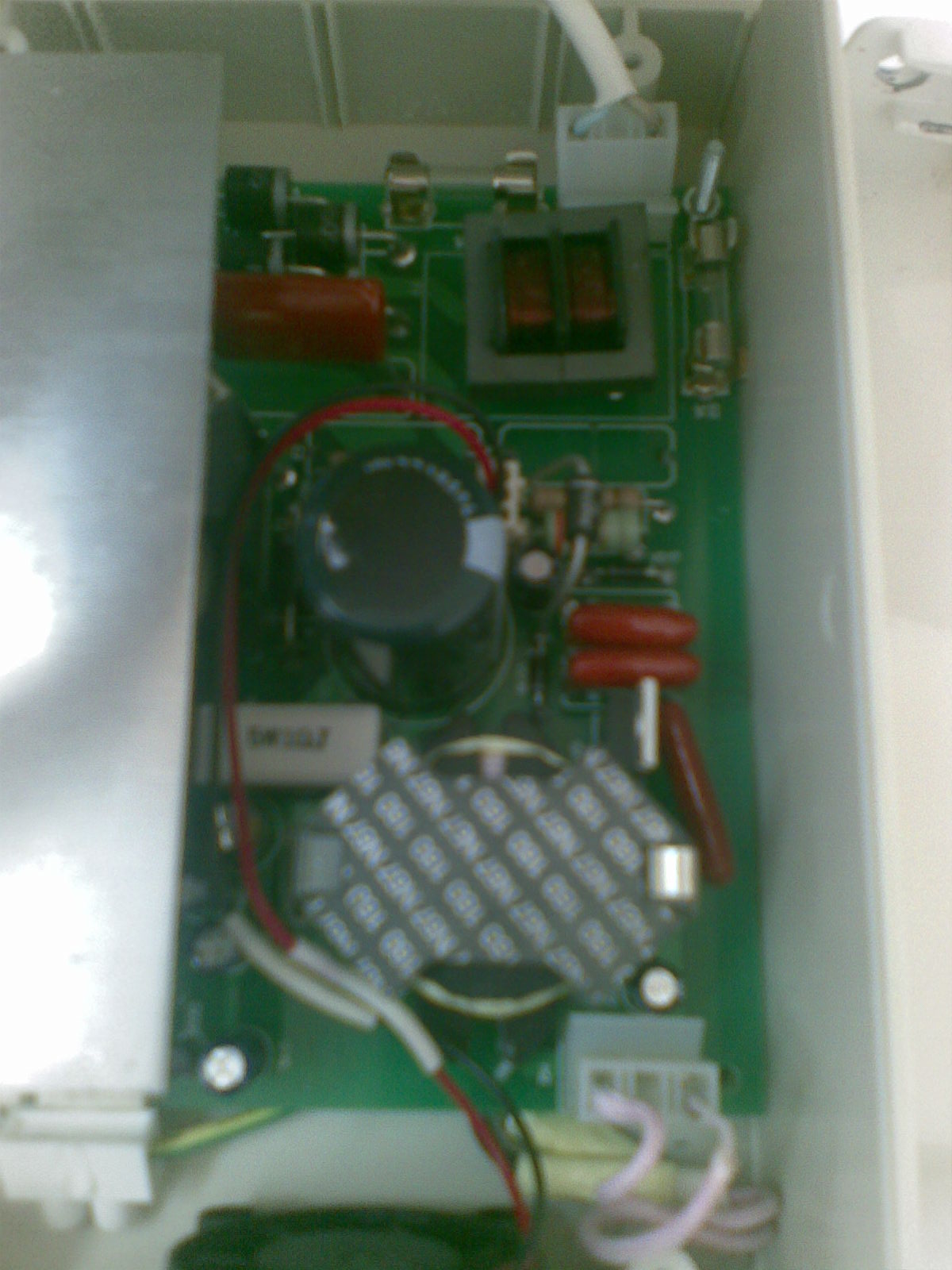 История такая. Аппарат новый (04.08). Месяц назад была уже заменена лампа (ДРТ 400). Но сие аппарат работает как хочет. При первом включении аппарат почти сразу же запускается (причем с некой вспышкой), но по истечении 6-7 минут отключается. При вскрытии блока управления я заметил что вентиллятор (кулер) не крутится, хотя на плате есть светодиод который моргает (что соответствует работе). на краю установлены 3 транзистора и 1 тиристор которые закреплены на один корпус, который нагревается, что аж пальцы обжигает!!! После отключения, лампа автоматически не включается... Её обязательно надо отключить, что называется от розетки, и прождать около часа. После того она опять запуститься на 5 минут. Если после автоматического отключения лампы, её отключить (пару раз щелкнуть микрик) то она еле светится... а напряжение на лампе не превышает 150 В. Я грешу на эти транзисторы и тиристор... Может не в этом дело? Нету ни схем, ни паспорта... Ниже фотки блока управления (качество не айс, ближе не смог подлезть).