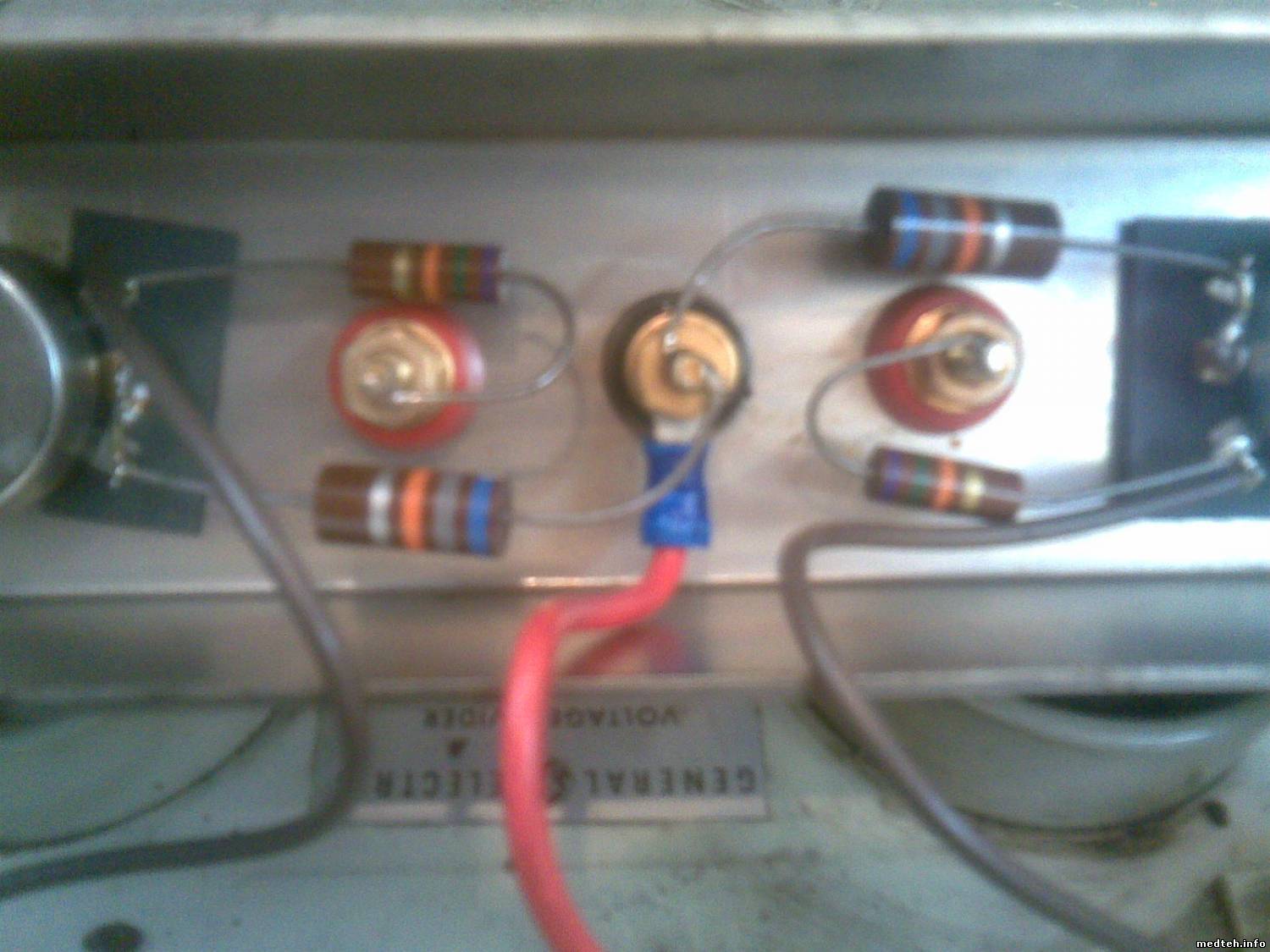 Уважаемый shnyder777, если у вас еще не отбили желание сделать делитель своими руками, то вот фотографии внутренностей аммериканского устройства. Высоковольнные резисторы по 10МОм последовательно по 10 штук в плече, подстроечники 50 кОм, остальные номиналы думаю разберете по цветам.