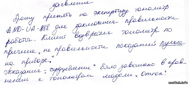 Опять блин! Бесит! (см. фото) Пришёл AND UA-888. Новый! Отлично измеряет на мне и коллегах по работе. Чудненько совпадают показания с УПКД-3. У меня уже заготовлено техническое заключение (ТЗ) с формулировкой - "несоответствий не выявлено". А что мне ещё делать?