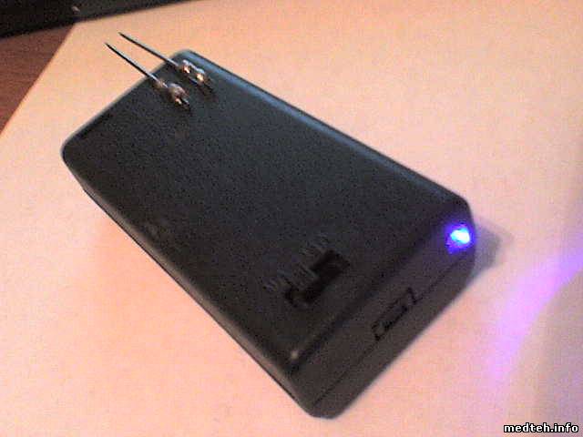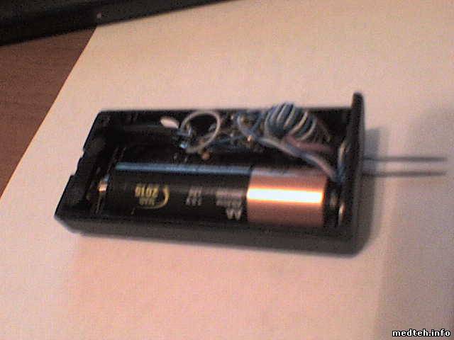 Корпус я сделал из кусочка кабельного канала. Можно сделать в корпусе маленького фанарика и пользоваться как фонариком. Потребление около 20мА. При измерении больше, 50-80мА. Подстроечник лучше увеличить до 5,6-10кОм. От него зависит частота и мощность б-генератора. Иглы постарайтесь сделать покороче, иначе мешает их сопротивление. Провода вместо игл не идут.