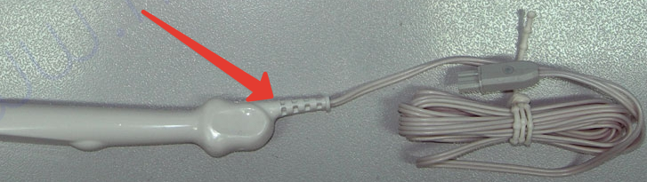 Вот место распространённой характерной неисправности всевозможных датчиков, индукторов и т.д.: излом на сгибе. Кто как реставрирует?... термоусадка клиента не устроит...