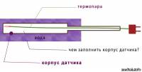 Заполнил пастой КПТ-8, т.к. других вариантов, по-моему, нет. Трансформаторное масло вытечет, порошок не засыпать- зазор между провдом термопары и стенками горловины моего корпуса около 1мм. Отверстие, где вставляется провод, заделал герметиком. Пробовал в кипятке- 98град. Думаю будет работать нормально. Мне надо ещё сам корпус цифрового термометра в эту кафедру как-то пристроить. Скоро пойду ставить , напишу, что получилось.