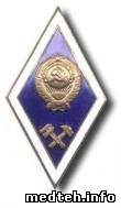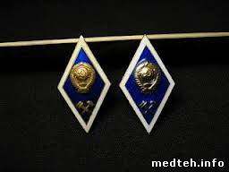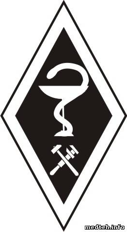 ромб, внизу символ технаря, наверху знак медицины - чаша со змеёй .
