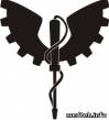 контур - шестерня ,шестиконечный крест и в нём змея вокруг гаечного ключа.