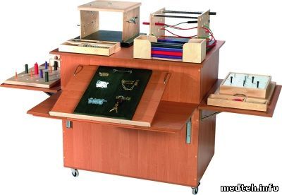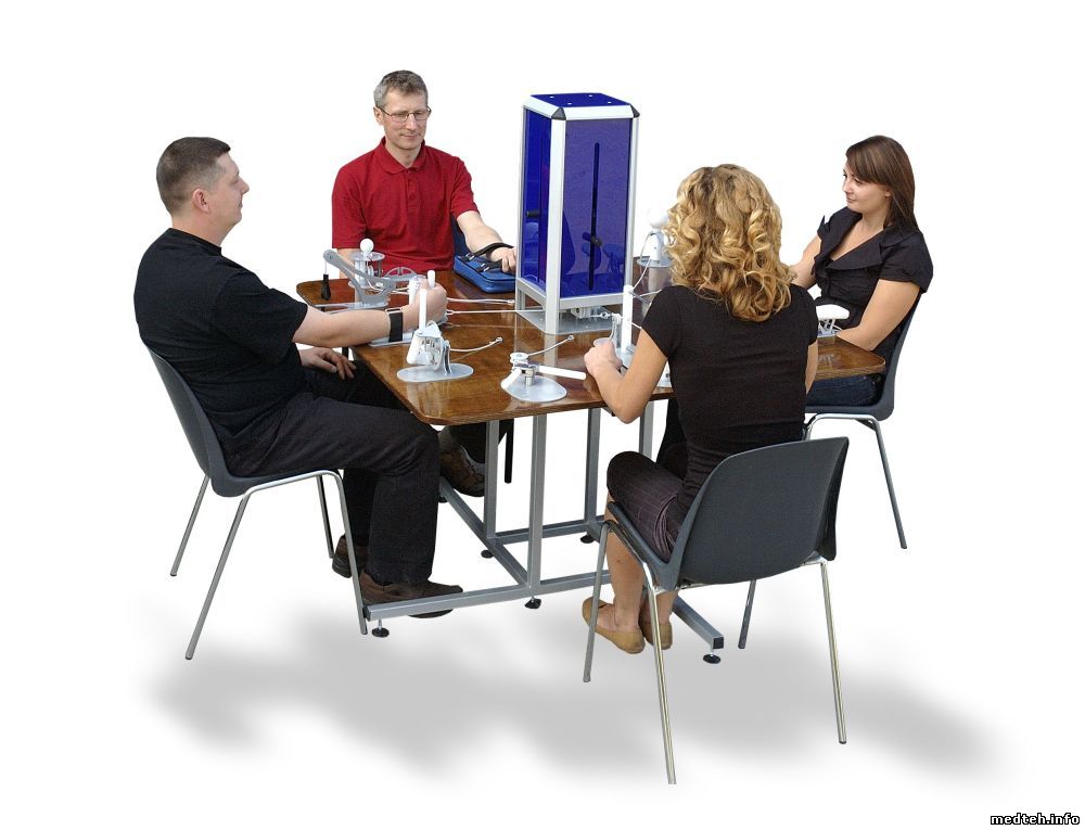 Стол для разработки мелкой моторики рук Manus применяется для разработки мышц и суставов верхних конечностей в составе оборудования зала ЛФК. Он был разработан для пациентов с параличем или деформацией рук, возникшей в результате ревматических, неврологических, ортопедических заболеваний и травм. Одновременно и независимо на аппарате могут заниматься до 3х человек.