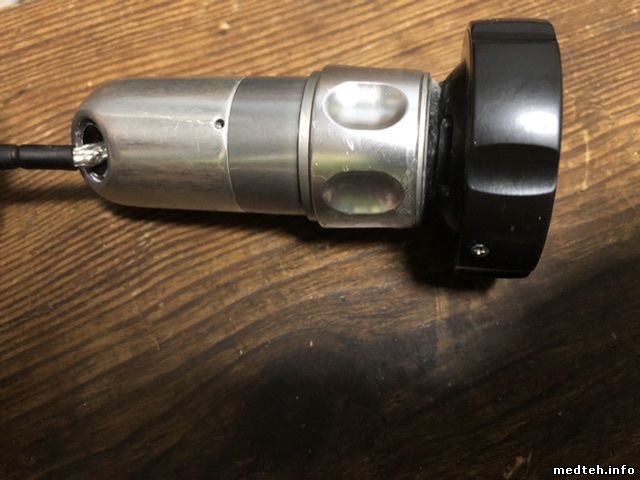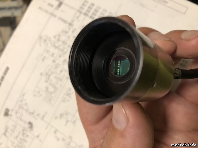 Проблема решена. Специалист ремонтировавший ранее камеру зачем-то склеивал ее части. Пришлось сделать круговой надпил на границе склеенных частей, после чего головку камеры удалось разъединить на две части.