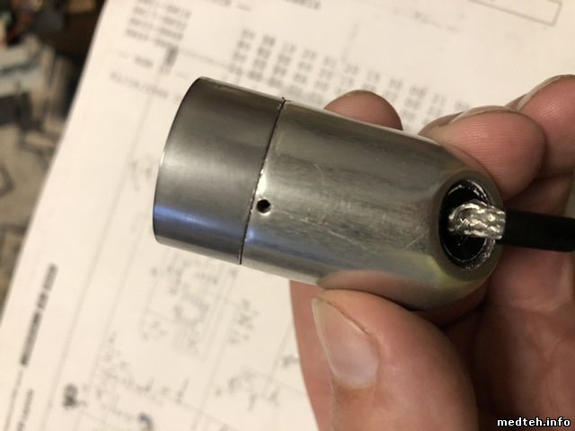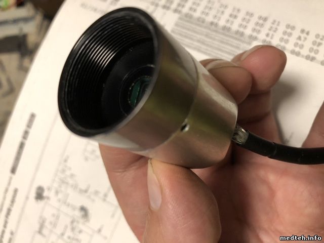 Добрый день! Перебит провод в 20см от видеоголовки. Вывинтил мелкие винты, чтобы разобрать ее, но корпус не разъединяется, впечатление, что залито каким-то клеем. Посоветуйте, что можно сделать. Надо ли греть, не знаю как повлияет на кристалл.