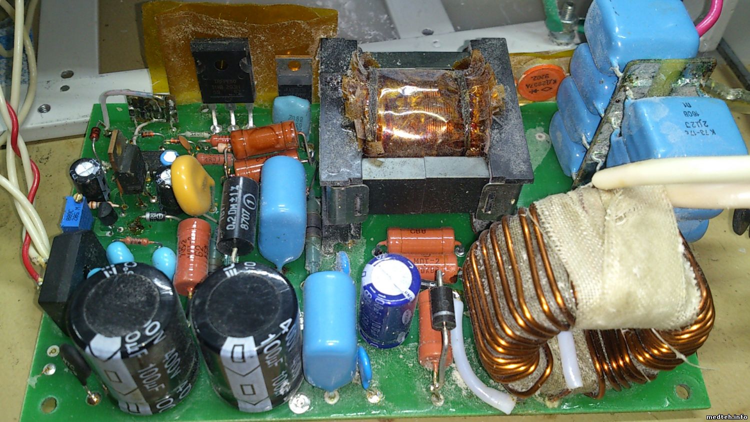 Может кто чинил такой? Выгорели ключ IRFPE50 и драйвер MC34262P, наверное, из-за пробоя выпрямителя 2Д2997А. Все паленое поменял, нагрузил БП на лампочку 40 Вт - имеем 70 В. Много это? Мало? Никаких опознавательных знаков на плате нет.