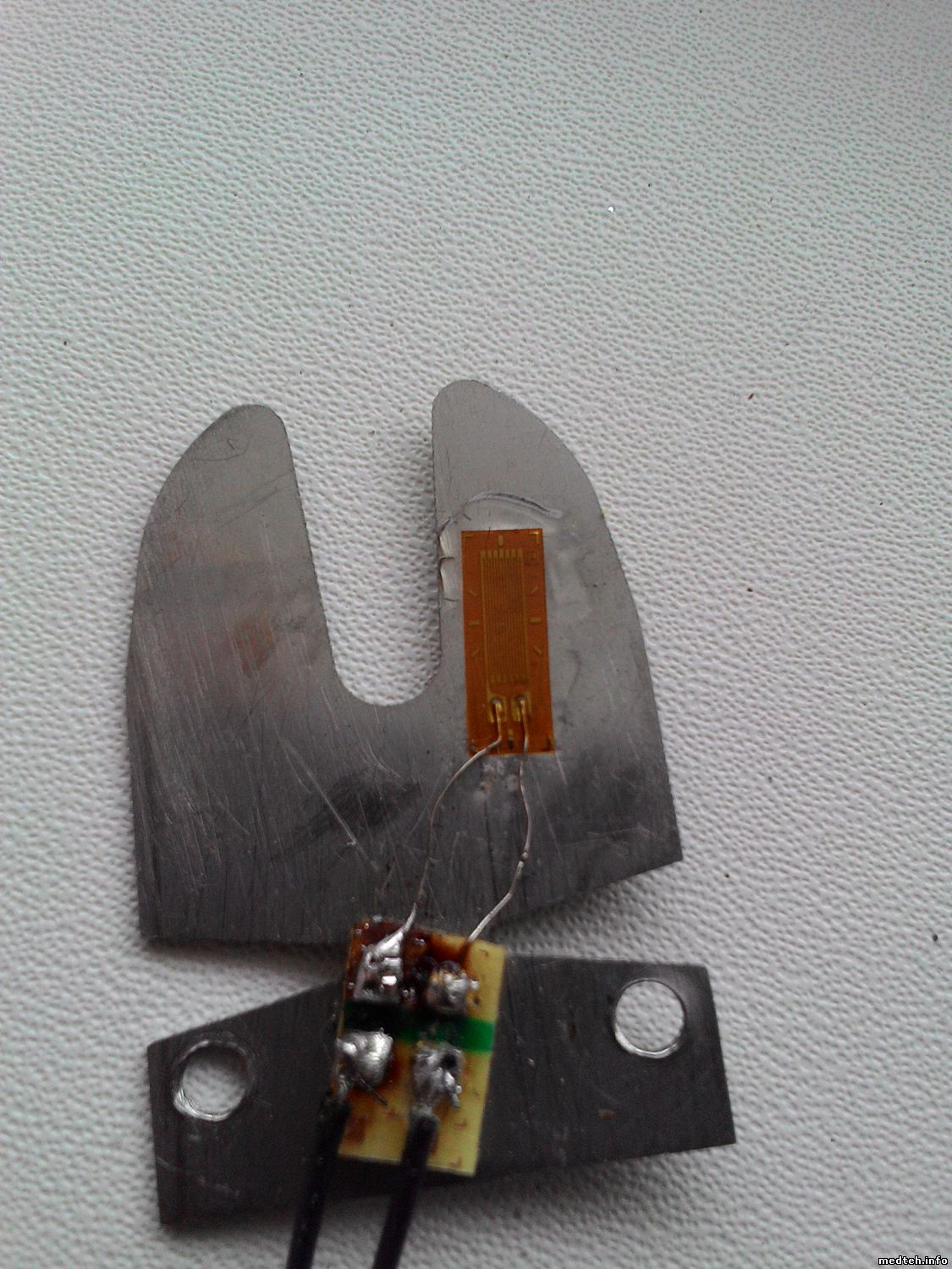 датчик должен смотреть "вперед"... т.е. с "конца" - поршень, трубка (слева), пластина, сенсор (слева). т.е. поршень давит на сенсор через трубку на пластину, на той стороне пластины приклеен сенсор. ..у вас там что-то перепутано (тоже как-то столкнулся с этим)