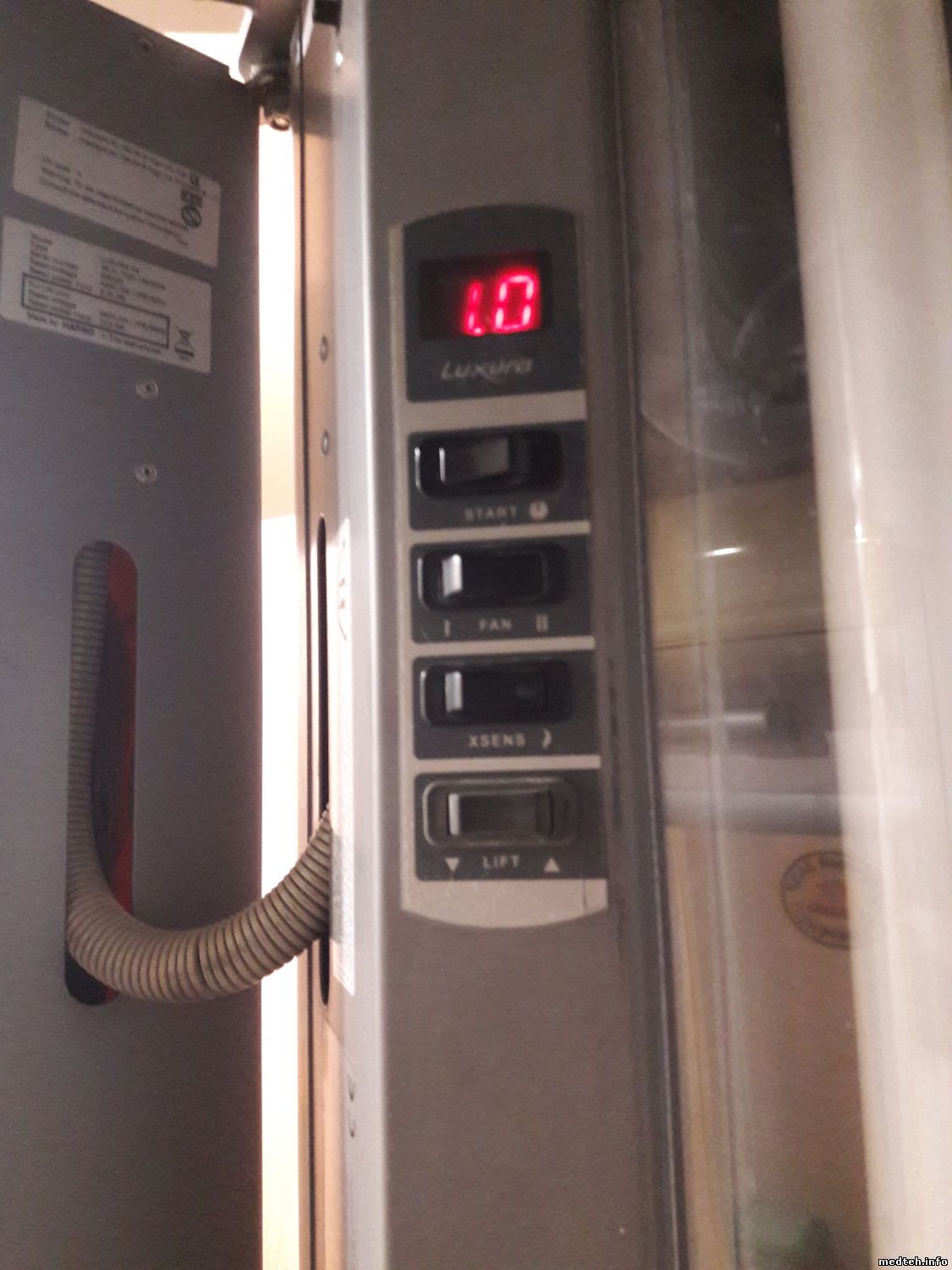 Всем привет! Попался солярий luxura V9. Жалобы, что не прибавляются минуты на табло в самом солярии. Т.е. на внешнем пульте время идет, а внутри солярия не видит клиент времени.