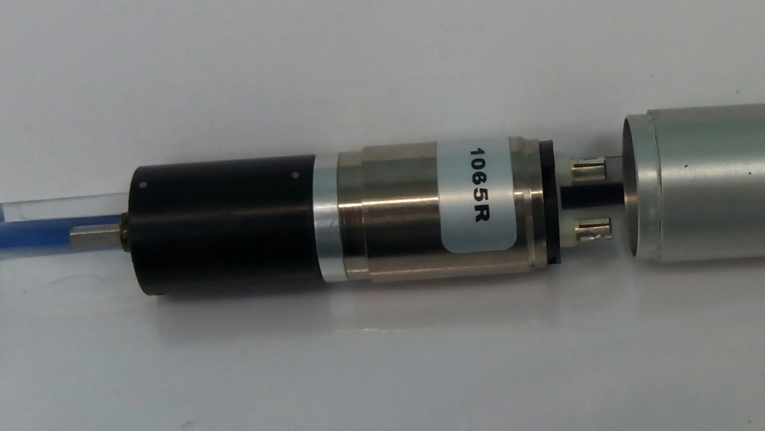 Вкрутите один винт в боковинку ролика, со стороны контактов и аккуратно потяните. Там будет алюминиевая капсула с мотором и редуктором. Редуктор напрессован на мотор. Контакты тоже завальцованы в корпус моторчика. Так что разборка ролика, это пустая трата времени.
