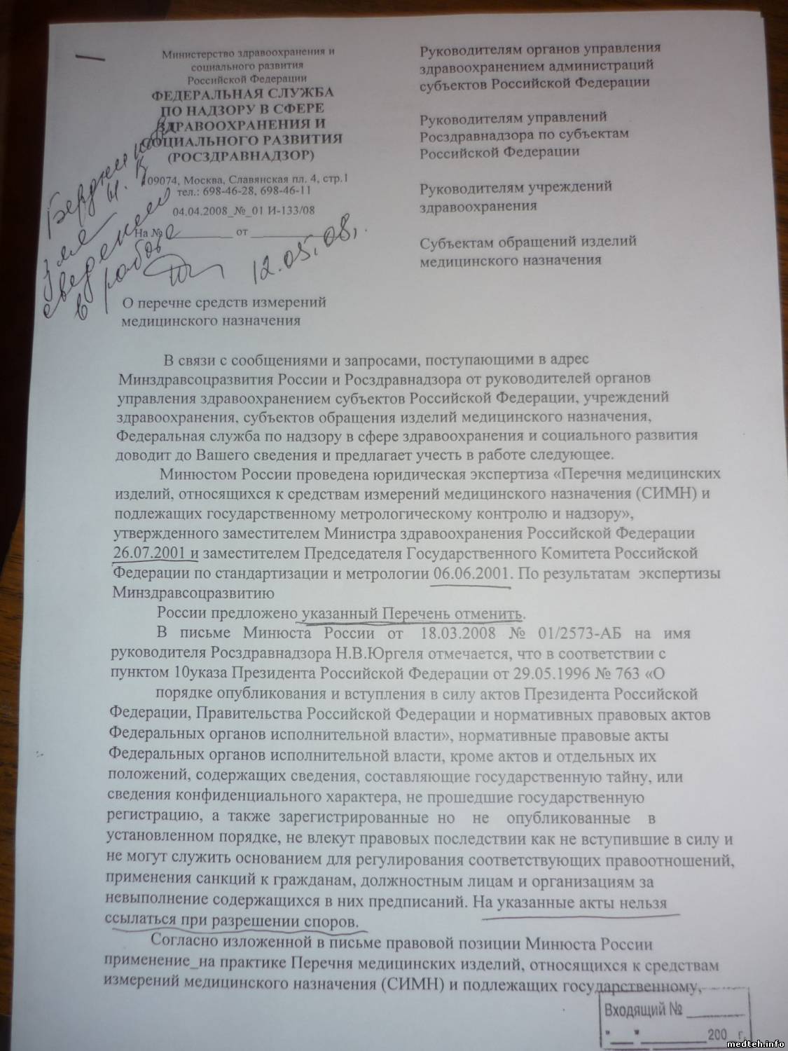 Нашёл письма Росздравнадзора. Думаю, они всем пригодятся против ретивых метрологов.