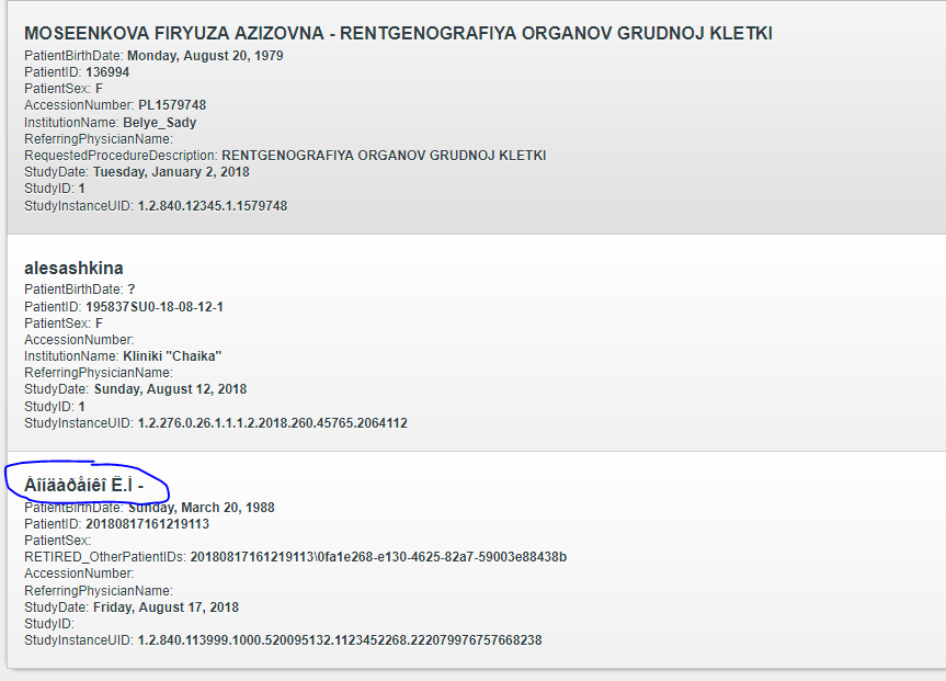Кто-нибудь внедрял DICOM сервер ORTHANC? Нужна помощь в транслитерации ФИО пациентов в списке исследований. Если кто-то сталкивался, подскажите пожалуйста вообще возможно ли это настроить, возможно есть у кого-то готовый плагин? Заранее очень благодарен.