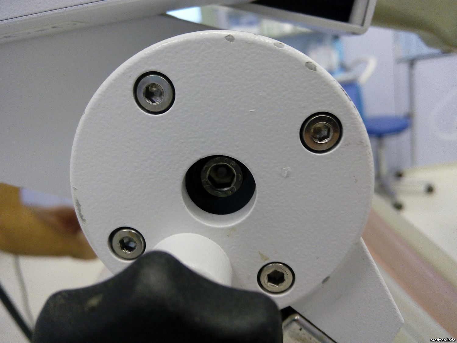 Здравствуйте, коллеги! Ситуация следующая: отправляли на ремонт аппарат УЗИ Flex Focus 400, который поставлялся в комплекте с литотриптером Dornier Compact. После ремонта выяснилось, что крестик для прицеливания при помощи датчика УЗИ не попадает в цент (проверяли при помощи фантома). Далее, при помощи юстировочного инструмента и консоли (ручки манипулятора, где фиксируется датчик) выяснили, что дело не в УЗИ, а присутствует механическое отклонение во время движения этой консоли.