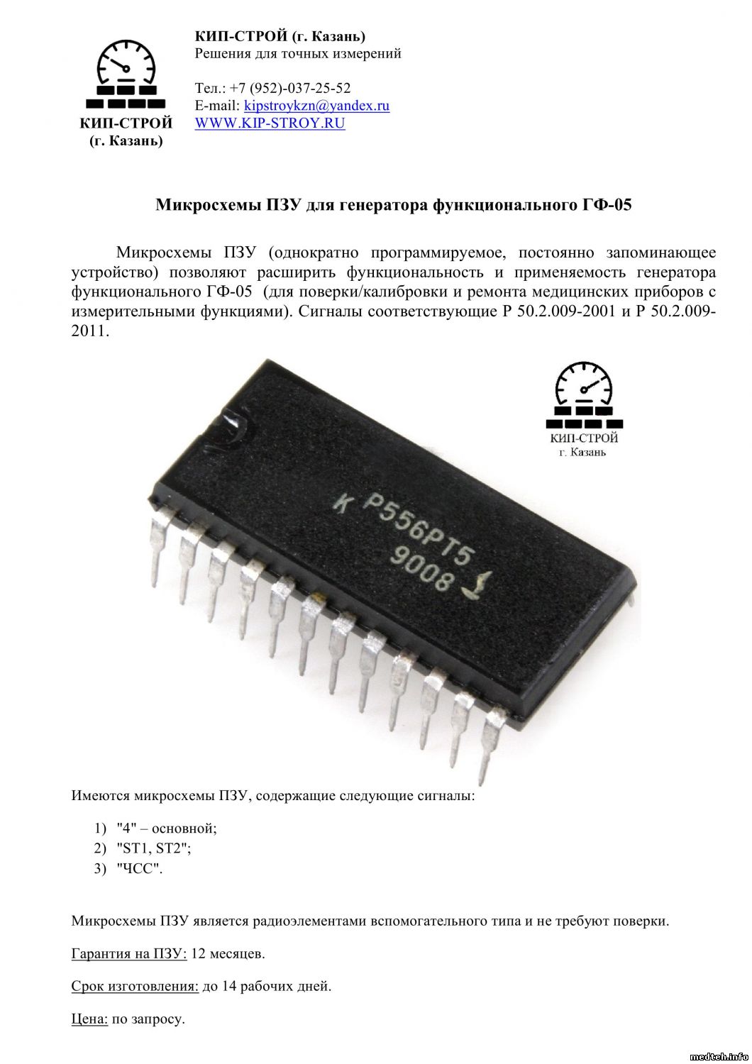 Микросхемы ПЗУ - это однократно программируемое постоянно запоминающее устройство. Они позволяют расширить функциональность и применяемость генераторов функциональных ГФ-05 (для поверки/калибровки и ремонта медицинских приборов с измерительными функциями).