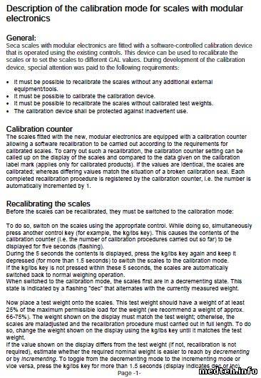 Доброго времени суток. Имеем около 100 весов Seca 769, но не можем откалибровать. Кто может помочь?
