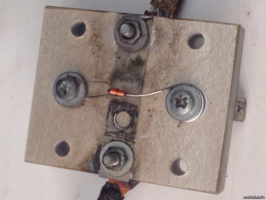 Может кто сможет подсказать... Имеется запайщик HAWO. выгорел элемент. помогите опознать его и его характеристики. Вроде термистор, но на сколько? Сей приблуда в разрыве находится между трансформатором и нагревательным элементом. Буду благодарен за любую помощь.