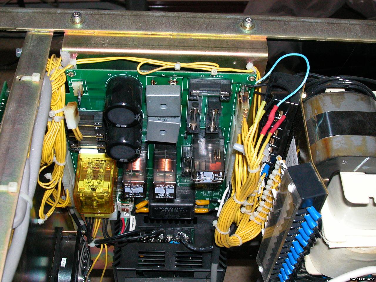 По поводу перегорания предохранителей на плате REX_Main Power Board - советую проверь качество контактов в разъёмах J1:J6:J8. В подопечных мне рентгенах (3шт) установленных практически одновременно в 2006 году в трёх травмпунктах с круглосуточным режимом работы и нагрузкой около 100 снимков в сутки, меня просто достала эта проблема на трёх аппаратах. Случалось как правило вечером или в выходные. Сгорали не только предохранители но и выпрямительные мосты, Замучился ездить... Долго не мог понять в чём дело... Пока не обнаружил первый подгоревший контакт. Затем решил эту проблему на всех аппаратах и почти пол года только получал зарплату за обслуживание.. dance2 .решил проблему заменой разёмов на колодки под болтики. Написал рекламацию и через пол года при монтаже нового аппарата обратил внимание что на новой плате уже стоят колодки.. good