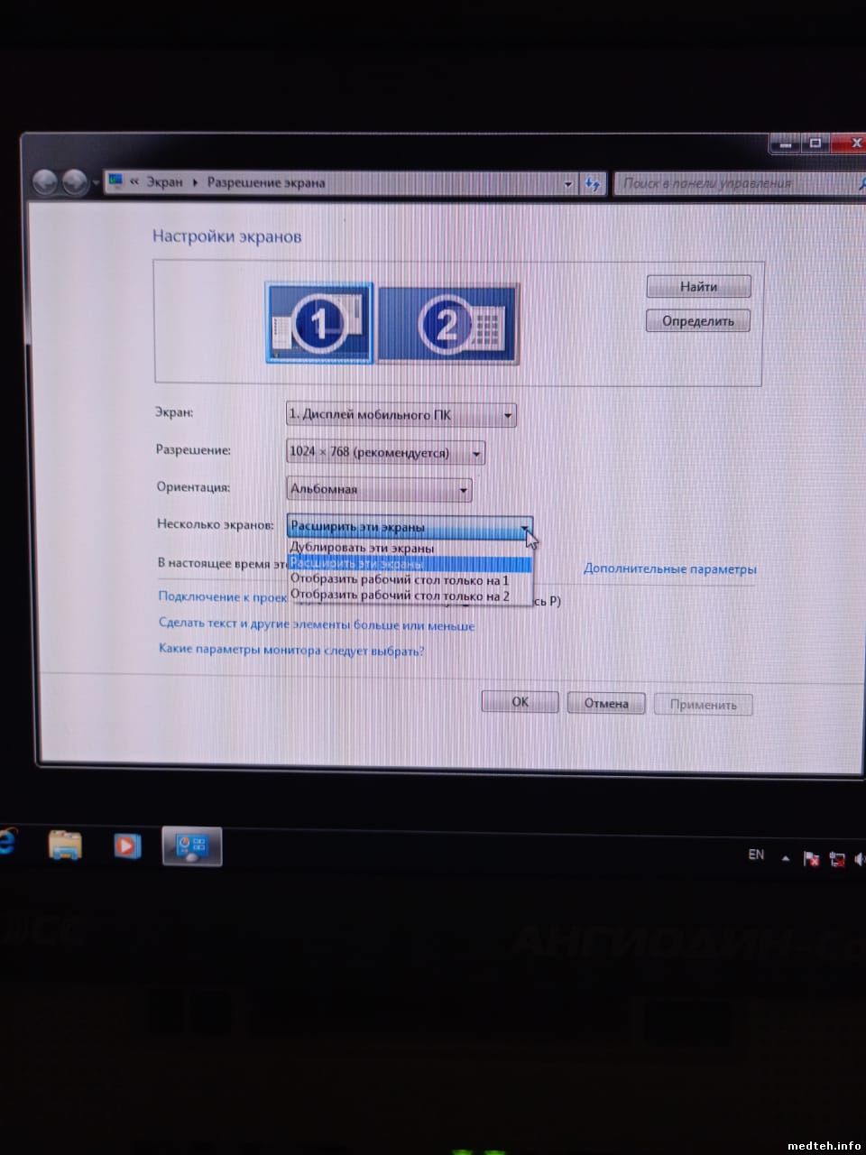 во время загрузки биоса дублирование экрана происходит, но как только загружается ПО узи выводится только расширенное изображение