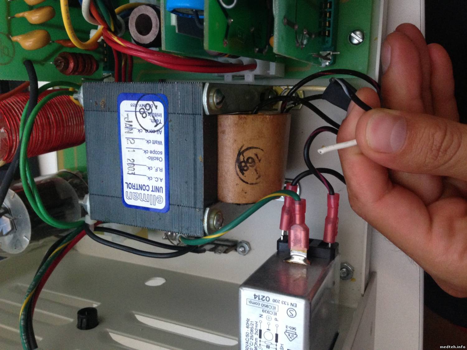 Подскажите пожалуйста. Надо написать акт о том, что сургитрон в порядке. На каком основании можно сказать, что аппарат работоспособен? Я так думаю, надо померить частоту и сравнить с паспортной, но как это сделать? Может куда-то можно вольтметр воткнуть?=)