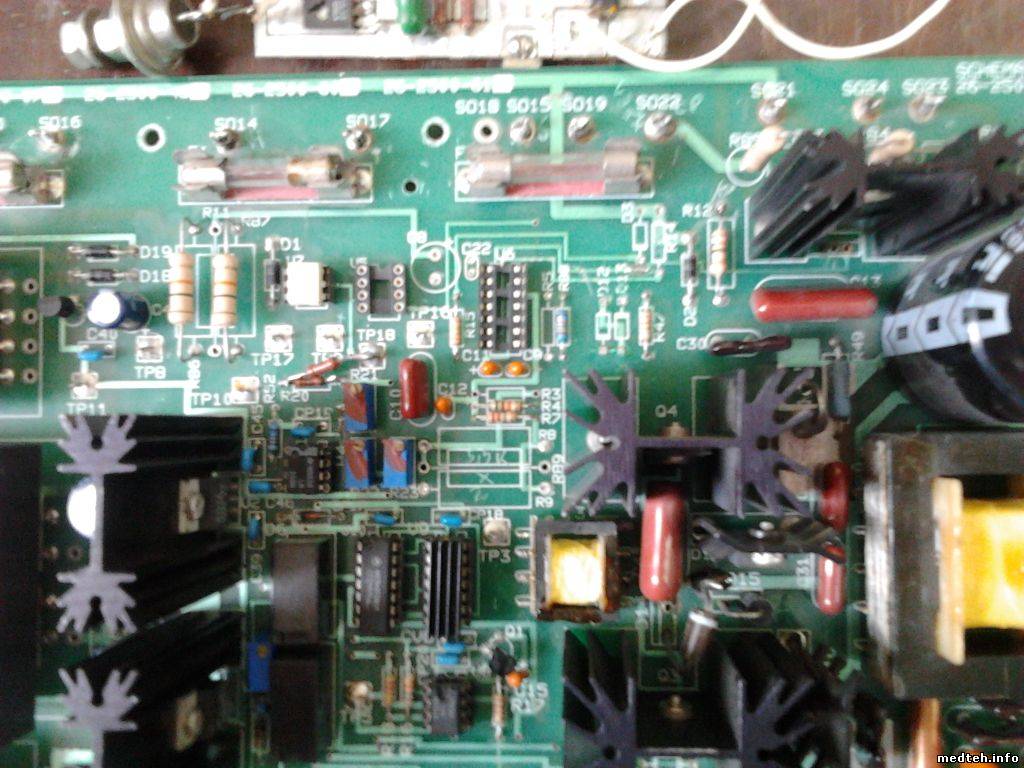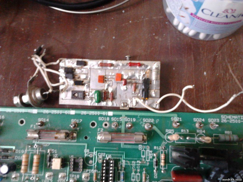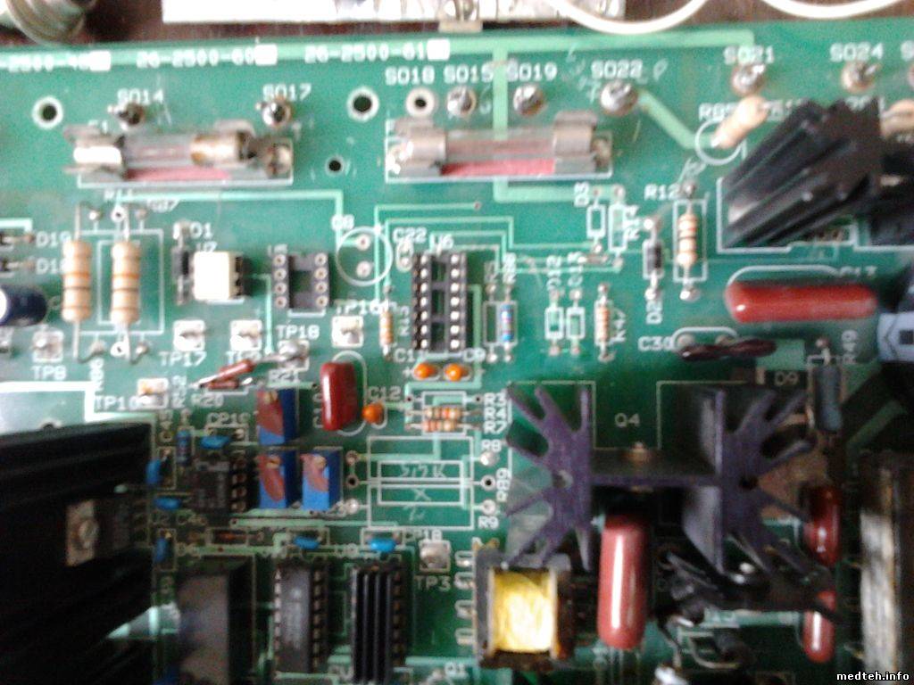 Попал в ремонт аппарат электрохирургический апапарат Contec HF-2500 (он же Model 26-2500 - Cameron-Miller) в котором покопались какие-то вурдалаки. Сняли микросхемы V5 V6 вместо них приделали самодельную схему. Сняли тиристор\симистор CR1 вместо него КУ208. Заменили V8 на 1006ВИ1. Сняли часть деталей обвязки. Помогите кто чем может.