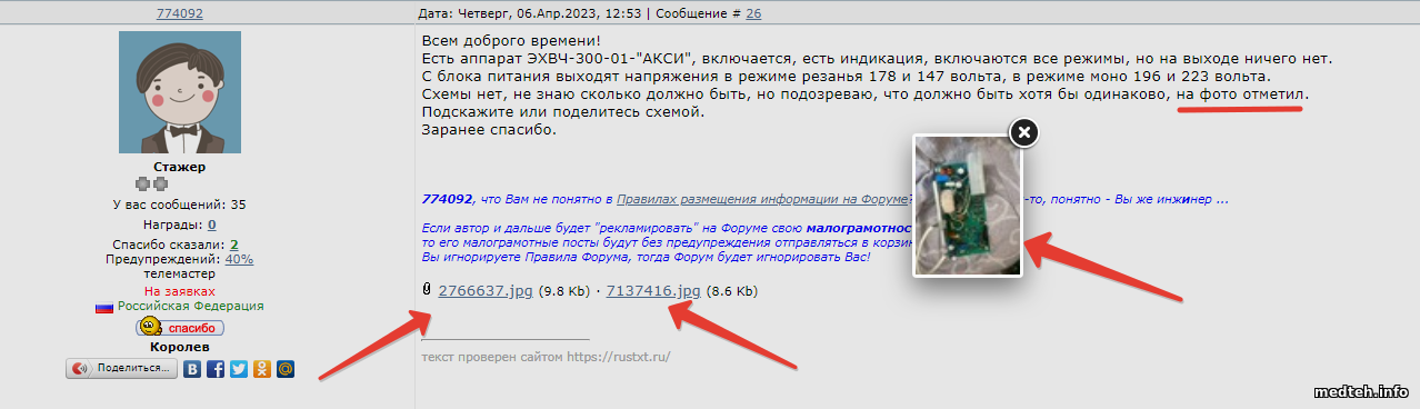 Коллеги, есть у кого-нибудь схема на аппарат ЭХВЧ-300-01 "АКСИ" 2014 года?