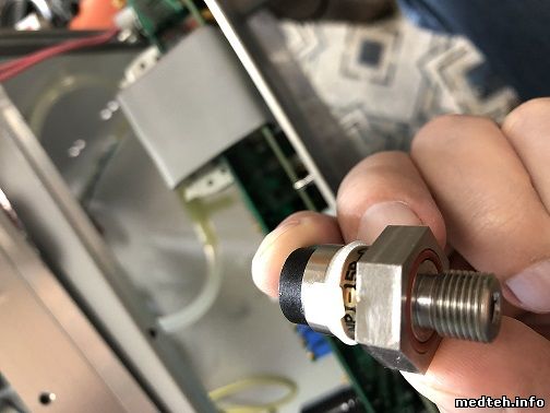 Всем добрый день! Периодически указанный инсуфлятор во время работы издает негромкий звук (похожий на глухую вибрацию чего-то, типа: р-р-р-р...). Был однократный случай пропадания давления во время операции. Хирурги боятся его использовать. Другие такие же инсуфляторы такого звука не издают. Аппарат сделан очень аккуратно и разбирать всё подряд неразумно. Где неисправность?