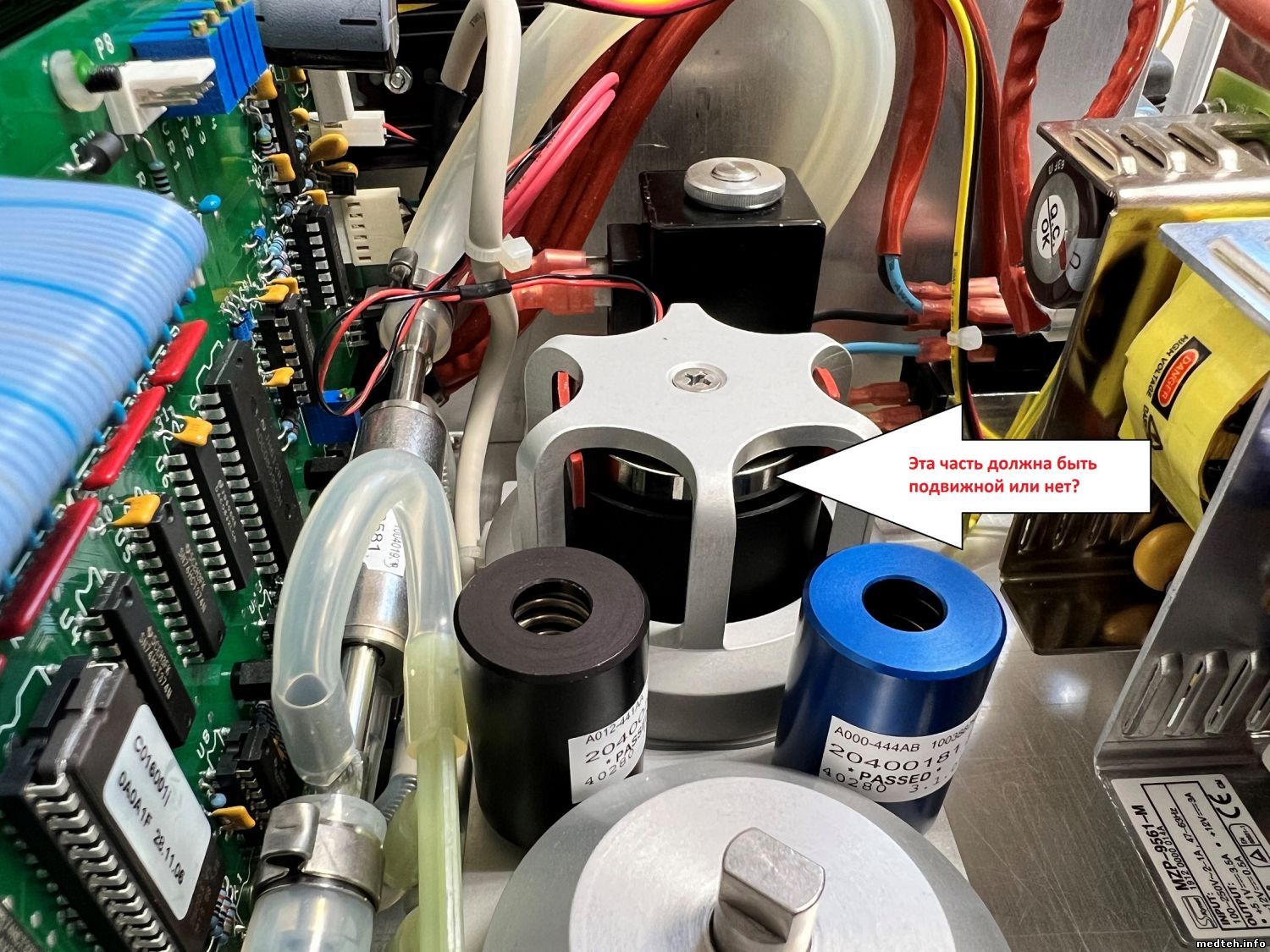 Медперсонал самостоятельно накрутил входной редуктор и увеличил давление газа в аппарат до 10 атм., скорость подачи, по их словам, немного увеличилась, но аппарат после этого начал выдавать звуковой сигнал и "ругаться" на низкое давление.