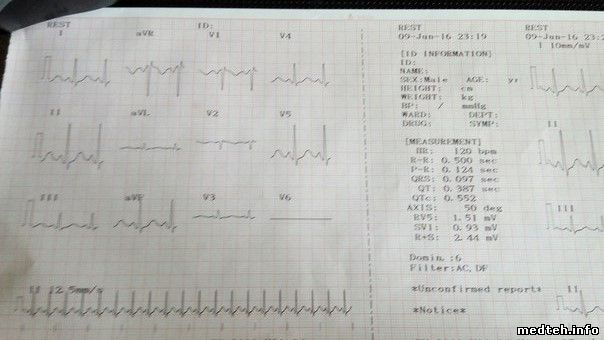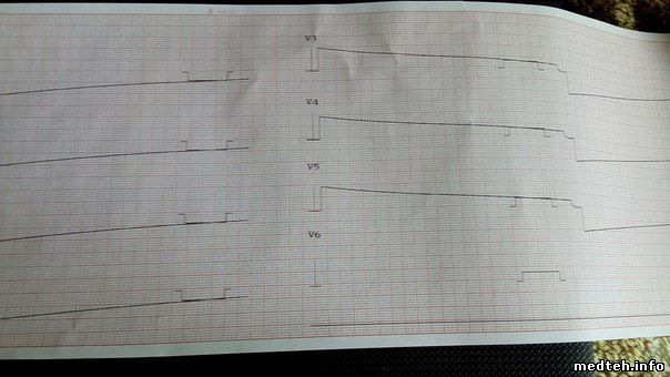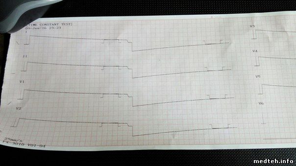 Коллеги, кто сталкивался: не пишет, ни на экране, ни на кардиограмме. Кабель целый, килоомы показывает одинаковые, обрывов нет, вытаскиваешь из эмитатора по одному - всё показывает, которого нет. В режиме самотестирования тоже не пишет С6(V6).