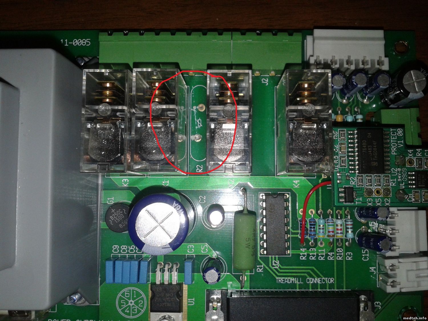 Но дело было банально просто. Грузчики, которые тащили дорожку, отломили многооборотистый резистор. Стоит справа под декой. Этот резистор отвечает за положение высоты угла наклона. Соответственно, когда дорожка его опрашивает, она не понимает в каком положении она находится, и уходит в "stand by". Поставил новый резистор и она заработала.