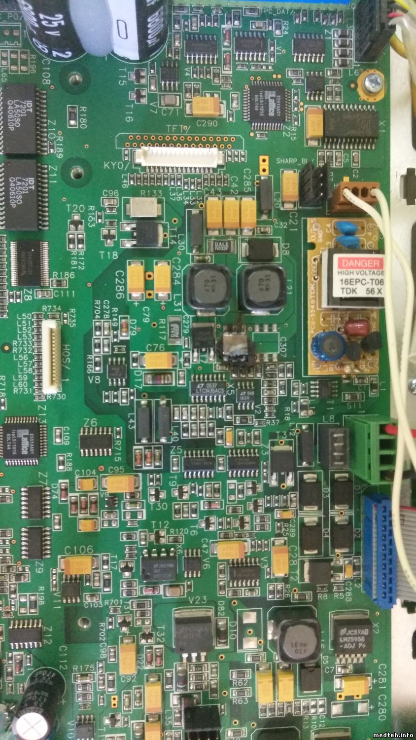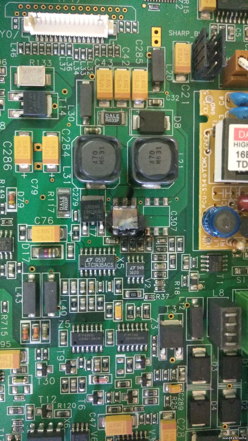 Здравствуйте. MAC 1200 SТ во время работы задымился, и больше не включался. Разобрал его. Вот что внутри выгорело. Подскажите, пожалуйста, что это за микросхема вылетела, может у кого схема есть, а то ссылки на схему, что выше давали, больше не работают.
