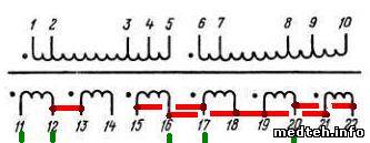 Выводы\Напряжение,В\Допустимый ток, А 11-12 \ 28 \ 0,25 13-14 \ 28 \ 0,25 15-16 \ 28 \ 0,8 17-18 \ 28 \ 0,8 19-20 \ 6 \ 0,8 21-22 \ 6 \ 0,8 Напряжение на отводах первичных обмоток трансформаторов ТA124 на 127/220 В: между выводами 1 и 2, 6 и 7 - 110 В; между выводами 2 и 3, 7 и 8 - 10 В; между выводами 3 и 4, 8 и 9 - 7 В; между выводами 4 и 5, 9 и 10 - 7 В.