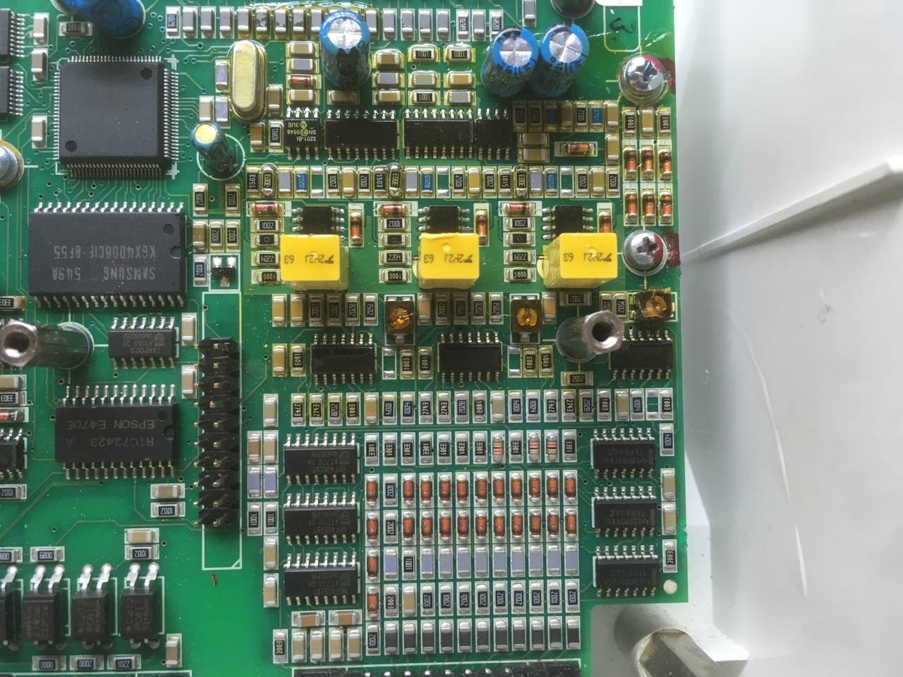 Ищу проблемы на плате, но без схемы крайне трудно, линии элементов, ведущие от разъёма кабеля до ОУ ведут себя одинаково и рабочие, и нерабочие (проверял лишь тестером на прозвонку и сопротивление), сами ОУ не греются при работе, вздутых конденсаторов тоже не вижу.