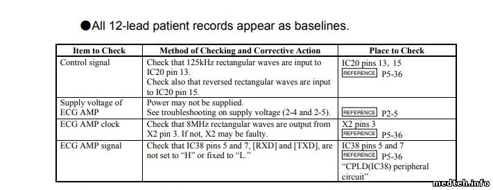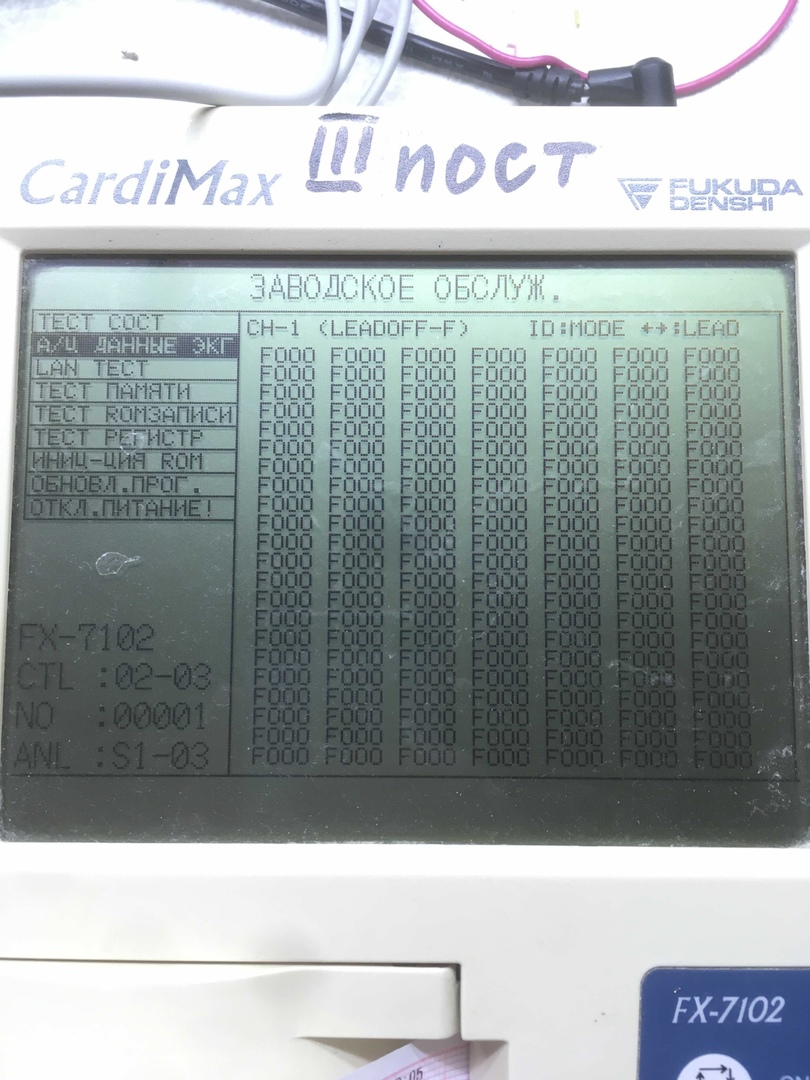 1) Кардиограф не видит ни один кабель, на экране всё время отображается базовая линия, при печати, соответственно, печатаются только обозначения. При этом в сервисном меню нулевые данные по всем отведениям (фото 1). Подскажите, где искать причину? Фото платы прилагаю (фото 2);