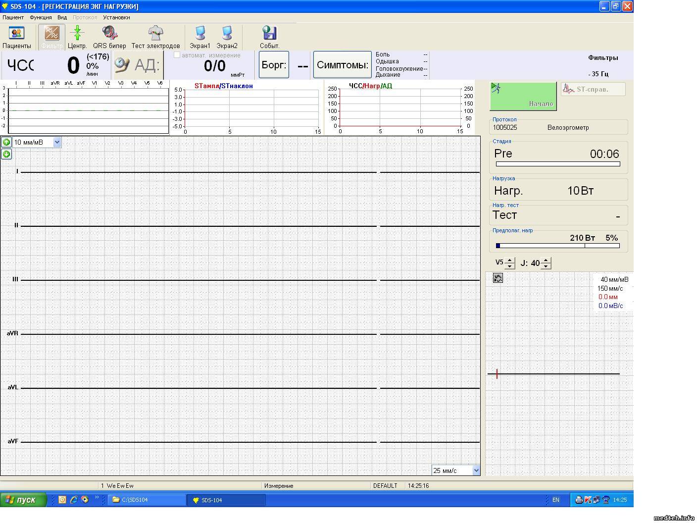 Добрый день,такая проблема. Аппарат велоэргометр Schiller, подключены электроды, запущенна программ SDS-104 - запускаем исследования и все графики и снятие данных происходит нормально.