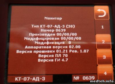 "Кардиотехника-04-АД-3". Тип КТ-04-АД3 18 Номер 350 Версия прибора 1.07 Версия ПО в приборе 1.07 kt-ad-3(s3)