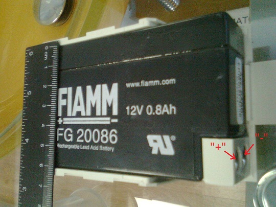 Смешная ситуация, забыл расположение плюса и минуса у аккумулятора. Кому не трудно, посмотрите на фотке, правильно ли? Прибора на руках нету.