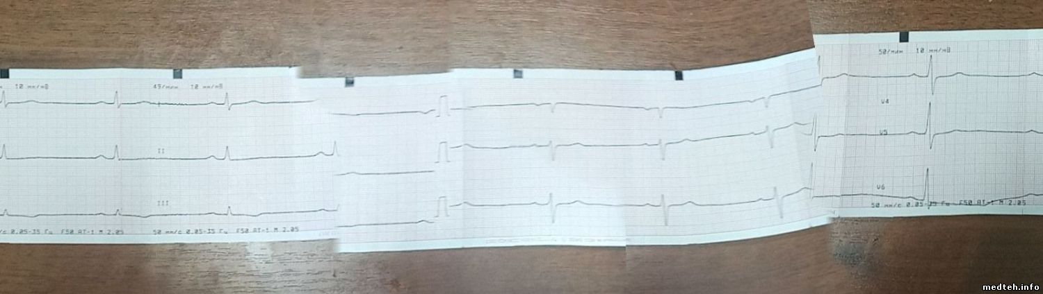Всем добрый день. Возникла проблема с кардиографом Schiller AT-1. Включаю прибор, выбираю отведение, подключаю источник сигнала, нажимаю "РУЧНОЙ СТАРТ". Прибор начинает печатать, но в любой момент может остановиться и выключаестя так, что для повторного включения необходимо нажимать кнопку "ВКЛ". Неисправность проявляется незакономерно, т.е. отключиться может в любое время. Отключается только при наличии сигнала ЭКГ на входе. При отсутствии сигнала рисует прямые линии и не отключается. Схема электрическая на прибор отсутствует, поэтому поиск неисправности начал с поиска непропаев в платах, а также исключением отдельных блоков.При отключении информационного разъёма от печатающего устройства неисправность не проявляется, поэтому есть подозрение на термоэлемент печатающего устройства. К сожалениею второго печатающего устройства нет и проверить не имею возможности. Кто сталкивался с такой неисправностью, прошу откликнуться.
