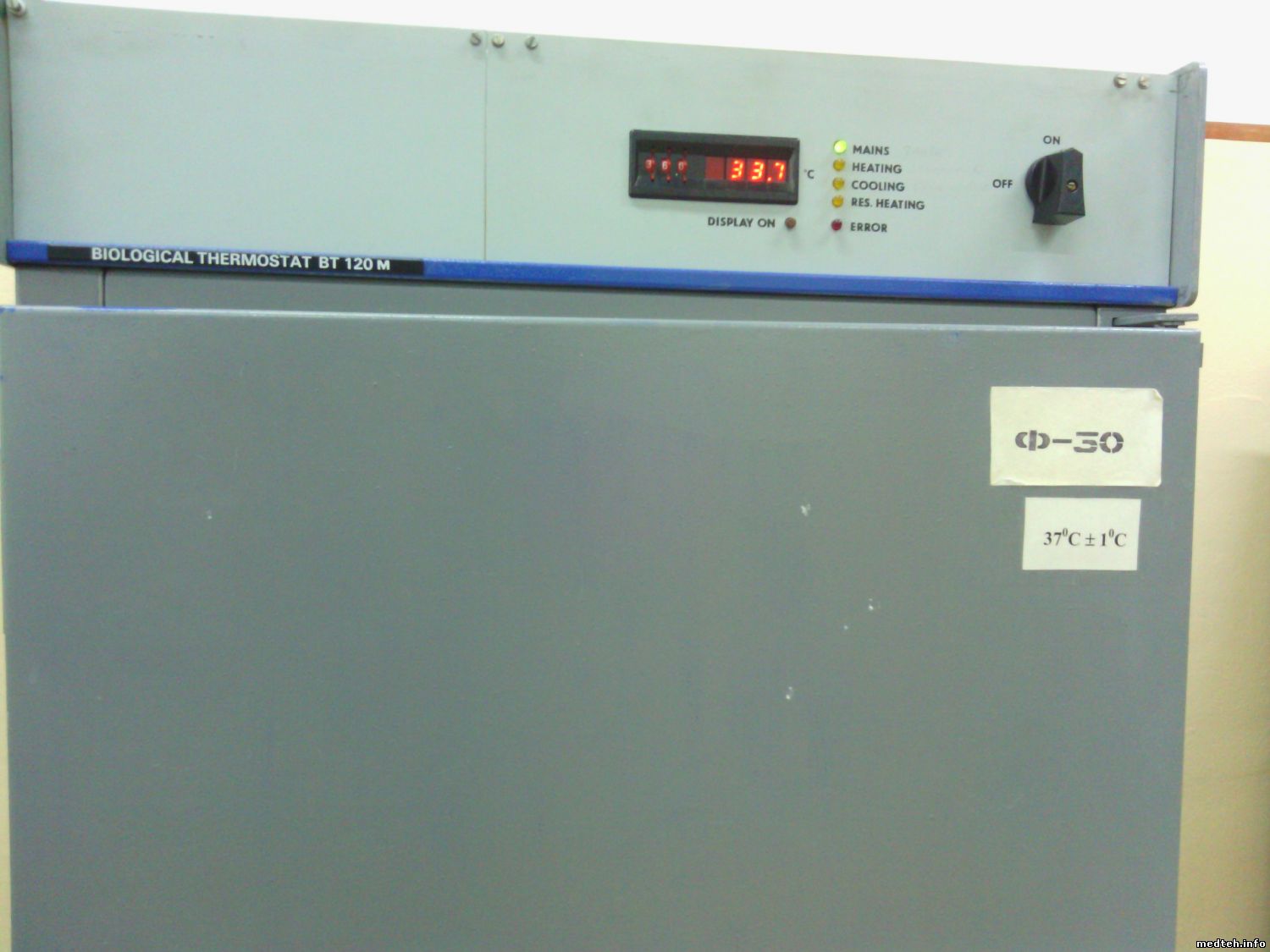 Здравствуйте коллеги. Есть вот такой аппарат BIOLOGICAL TERMOSTAT BT 120M. После ремонта требует подстройки установочной температуры, но однако нет ни схемы ни инструкции. Тех. документация отсутствует. Хотелось бы знать что за подстрочные резисторы или гадать дальше, что обозначают буквы на дисплее перед цифрами ( "С" "Е" ). Фото прилагаю. SOS!