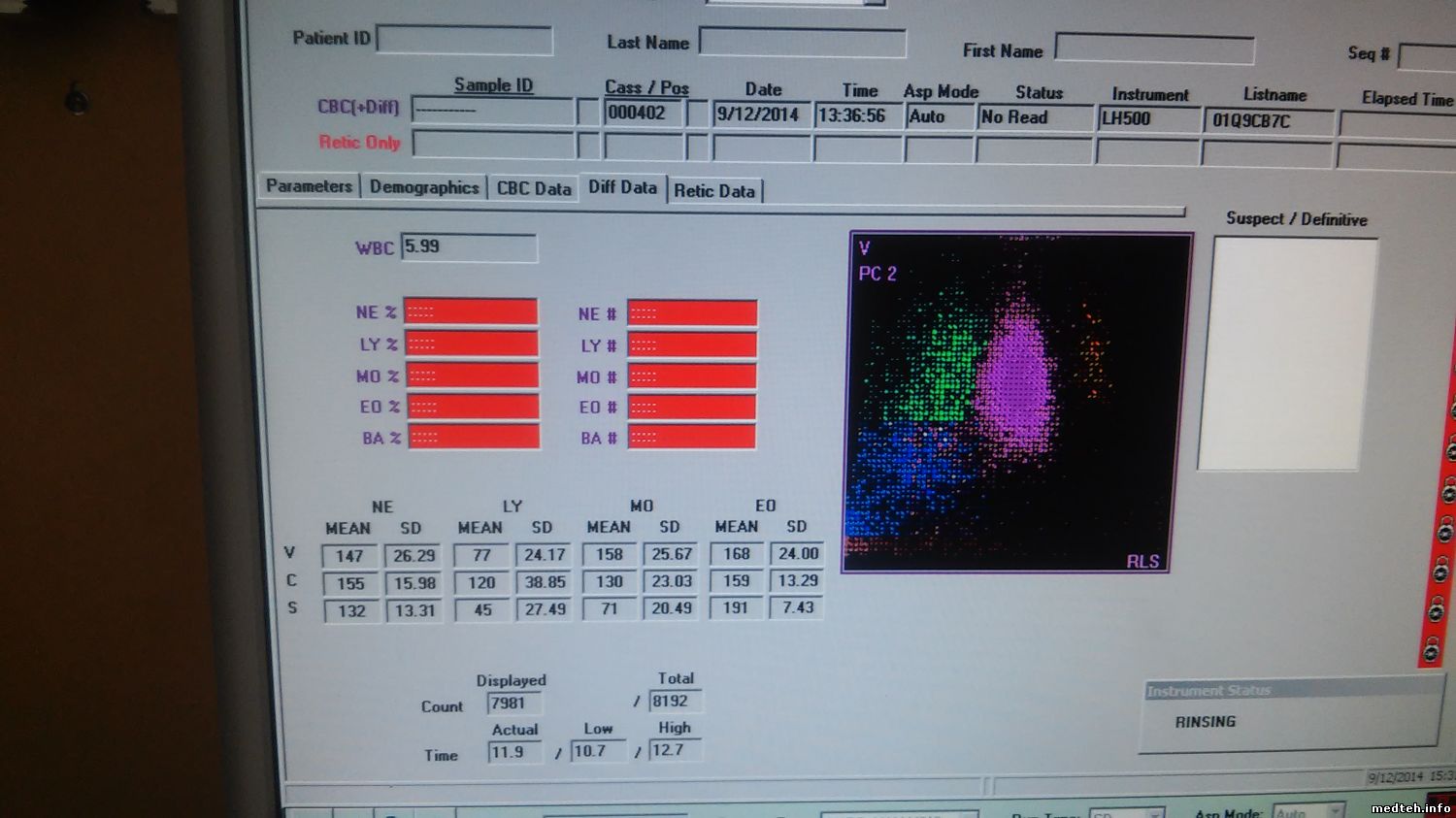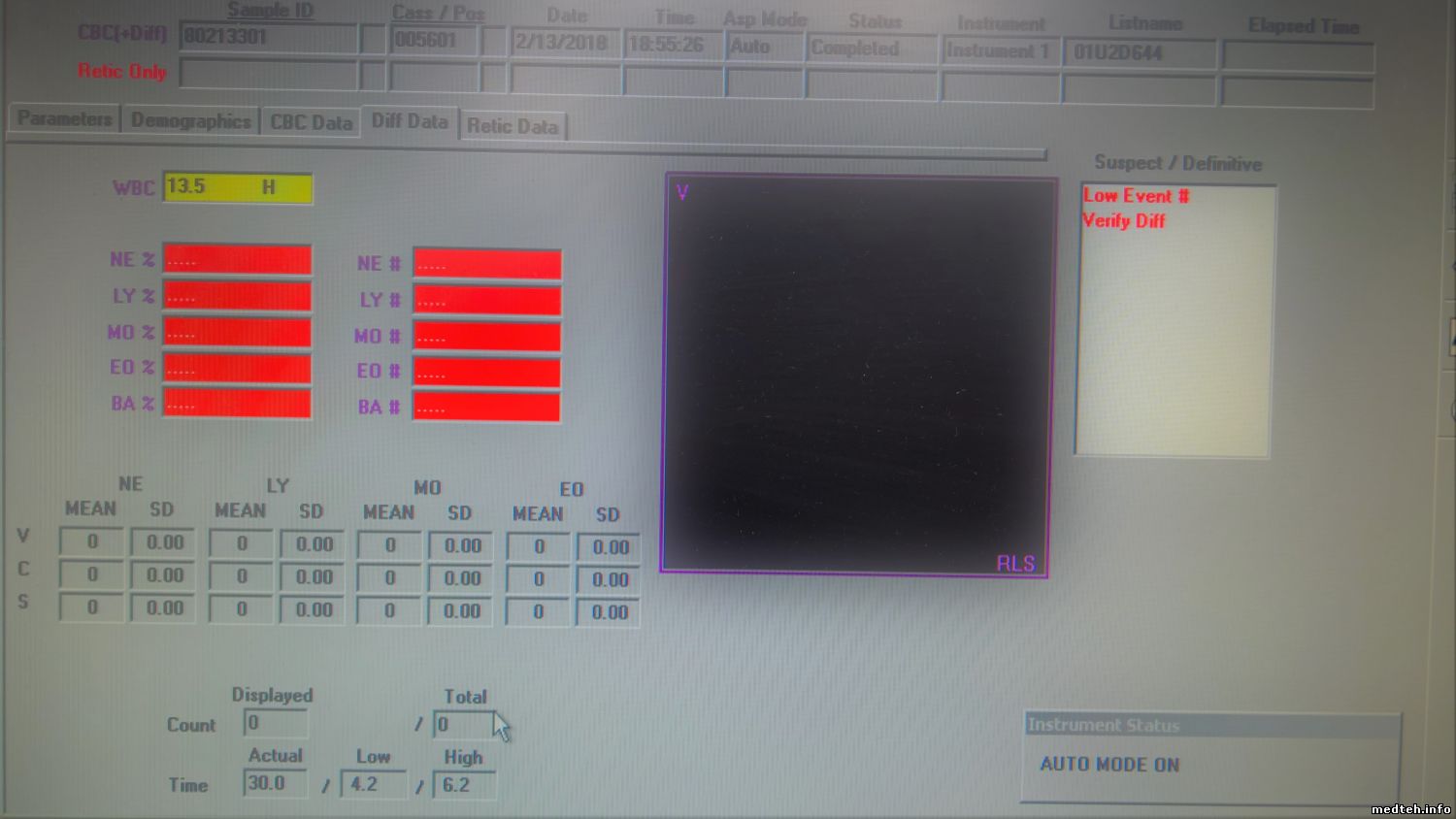 Сегодня внимательно посмотрел за циклом. Даже вроде через (новую) трубочку от мешалки проточной кювете поступает кровь, но анализатор все равно не считает в проточной ничего. Выложу фото экрана деференцировки . Как я понимаю все таки клетки крови не проходят через кювету, хотя еще раз повторюсь на вид ток жидкости видно.