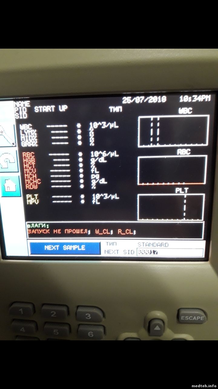 Заявленной неисправностью было то, что анализатор сильно (10х) завышал результаты анализов гемоглобина и лейкоцитов. После всевозможных чисток гидрохлоридом натрия 0,9% и реагентами я сделал контрольный цикл, запуск аппарата и затем запуск анализа с калибратором, на выходе результат анализа теперь показал что ВСЕ параметры крови завышены в 2-20 раз, а далее после перезагрузки систем аппарат стал выдавать ошибку цикла запуска, было принято решение заполнить проточные системы гидрохлоридом натрия на ночь, но даже после этого и повторных циклов промывки и контрольного цикла на следующее утро цикл запуска не может быть выполнен из-за той же ошибки "Ошибка цикла запуска"