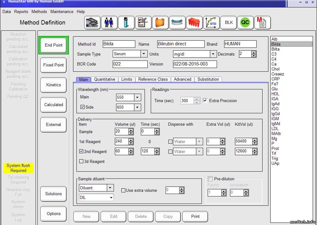 Уважаемые коллеги, как на сей чудо-машине - автоматический биохимический анализатор HumaStar 600, производитель: Human GmbH, Германия - включить бланк образца (например на билирубинах)? И (менее насущно) реагентный бланк при анализе. Все мозги разбил на части Все извилины заплёл.