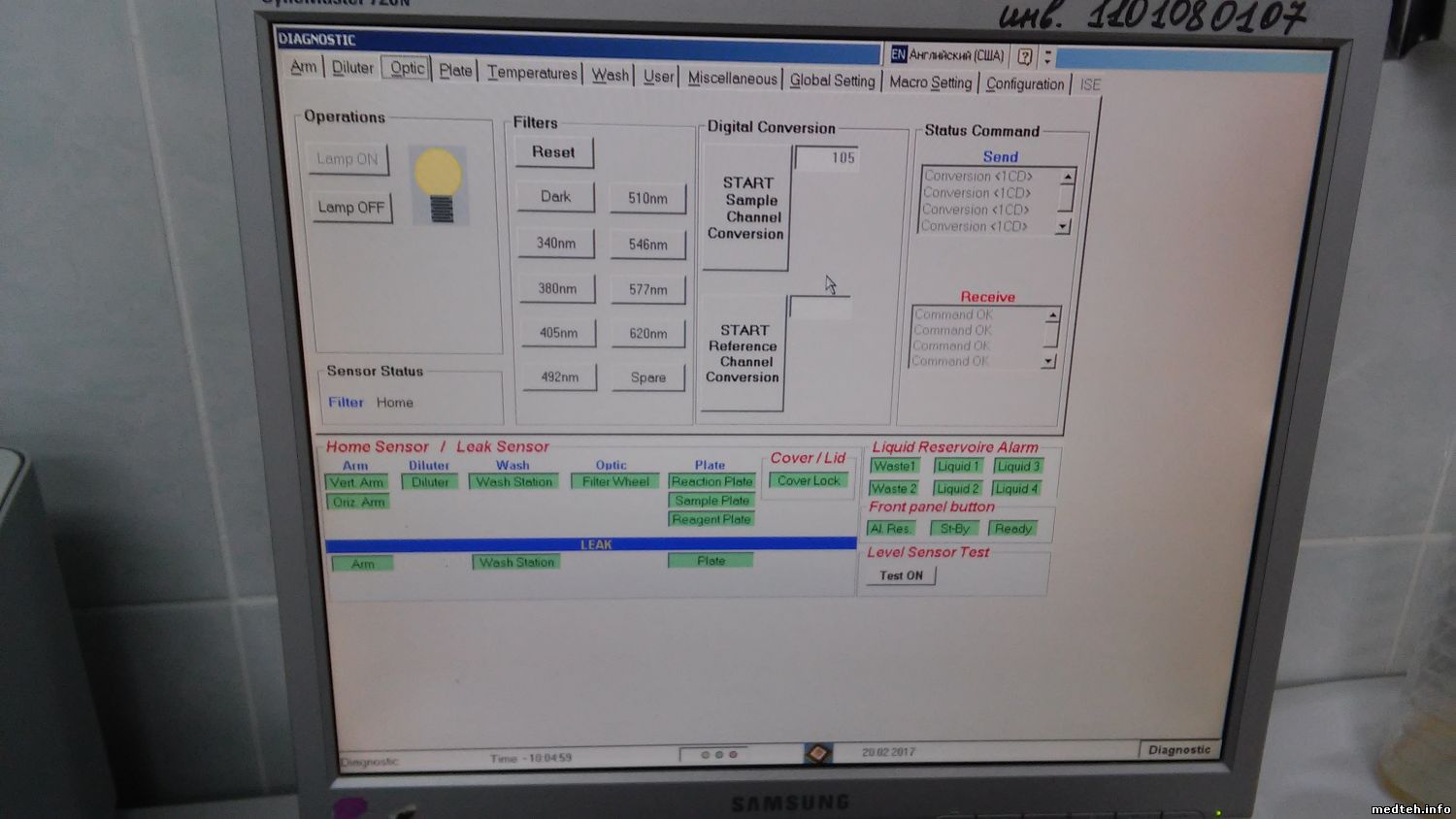 В итоге, съездила в военный госпиталь, где стоит такой же с 2007 года и благополучно работает, осмотрела его. Скопировала руководство на русском 255 стр., отыскала запчасти, подключили. Попросили нашу местную фирму помочь. В итоге они связались с МедСервис г.Москва и заплатили им чтоб те приехали и запустили, приехали, поставили ПО и уехали (я в этот момент была в отпуске). Сказали, что вроде заработал и сделали даже анализ. Потом провели процедуру проверки чистоты кювет, и анализатор заблокировал все кюветы (пометил их красными). Повторная проверка так же отметила их грязными - запустили промывку - ничего не изменилось. Инженер посмотрел всё что можно. Сказал, что лампа в норме, фильтры тоже, параметры по проверке в пределах норме, но всё равно блокирует. По какому критерию анализатор блокирует все чистые кюветы - не понятно.