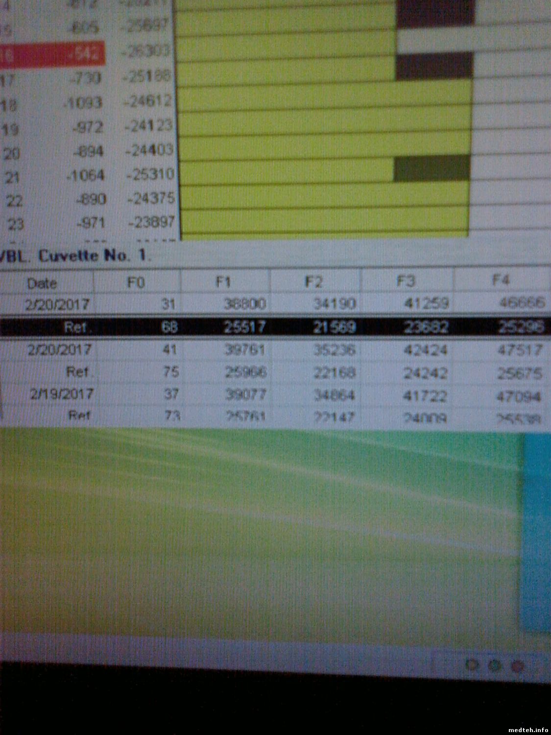 Приложено не совсем актуальное изображение, после шаманств с фотометром (настройка согласно сервисного мануала) получили другие значения (см. приложение). Эти значения тоже не соответствуют норме? Кюветы не были в эксплуатации, визуально новые.