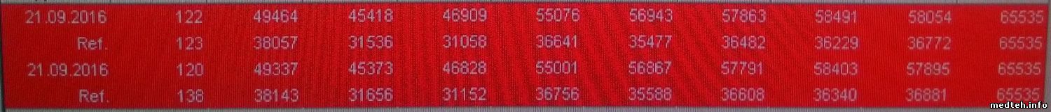 Примечание: Судя по значениям АЦП (числа 28 000 … 63 000) - всё очень хорошо, но значения ABS очень в минусах (обычно следствие регулировки Gain при плохой лампе).