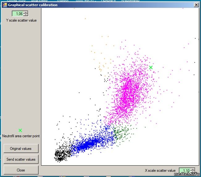 - далее, не знаю как для Quintus - для Абакс 5 есть утилита, позволяющая точно определить требуемые значения Scatter X, Y - просто "подтягивая " на скаттеграмме область нейтрофилов ( из пробы нормальной крови!!) к требуемому положению (см. scatter_xy).