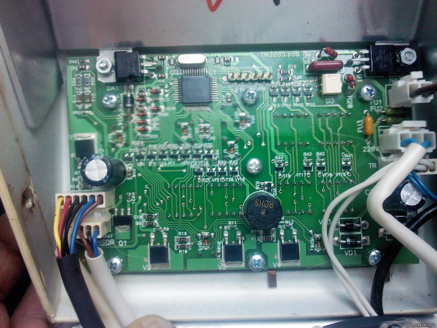 ты хоть коллега тему почитай...я уже всё расписал выше...но не поленюсь и вкратце напишу: сначала нужно проверить сигнал на контроллере atmega 8538-au16. кажется нога 36...далее есть оптореле, далее симистор... но интуиция подсказывает, что у тебя накрылся контроллер, как и в моём случае...писали на завод, там деликатно послали на три буквы...а просьба была простая, мол пришлите новый контроллер...ему ж цена копейки, и попросить огромные деньги не могут...ну и сказали, мол модель снята с производства, документации и пр...фигни нет...но по закону о защите прав потребителя их конечно можно нагреть, ибо если не указан срок службы, то срок считается 10 лет...но коллега, есть у вас крутые юристы для этого случая? думаю нет...можно конечно сколхозить но оценят ли ваш труд...мне опыт говорит, что нет...медучредения не ценят добрых дел...даром хотят...