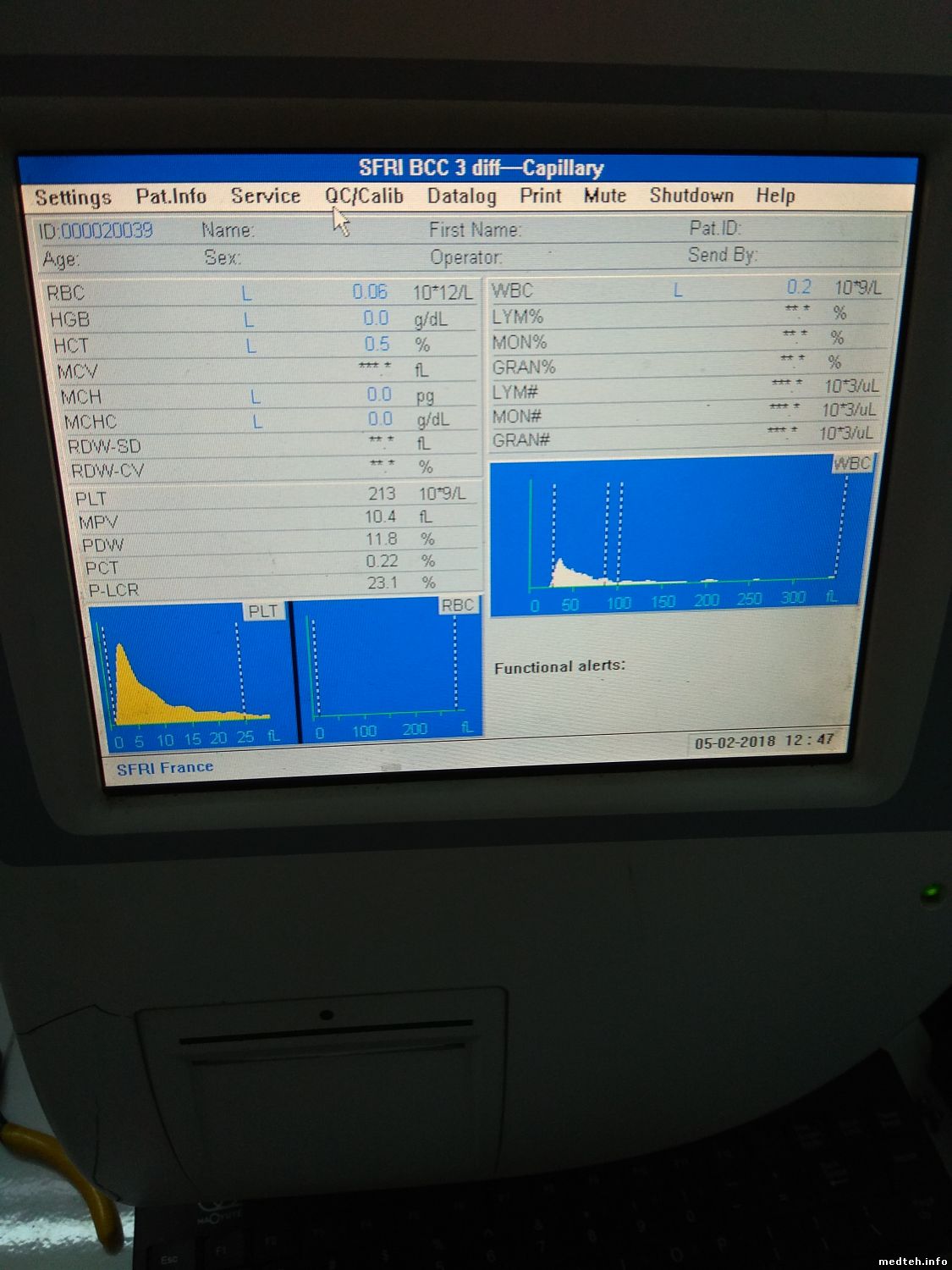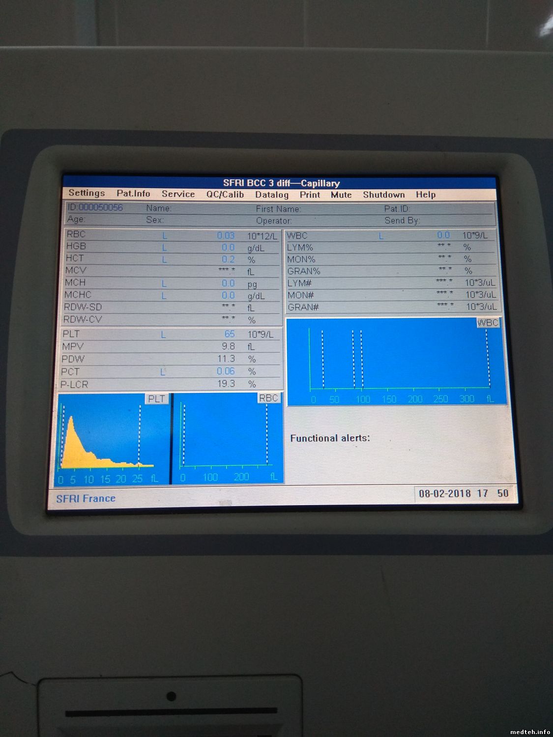 Инженер который его видел говорил что редкостное гуано. Я насколько понял - это одна из разновидностей Procan подобных анализаторов. По на Windows 98 (может и новее), название SFRI H18, SFRI Countender 30, Dixion Hemalite, Procan PE-6100/6800.