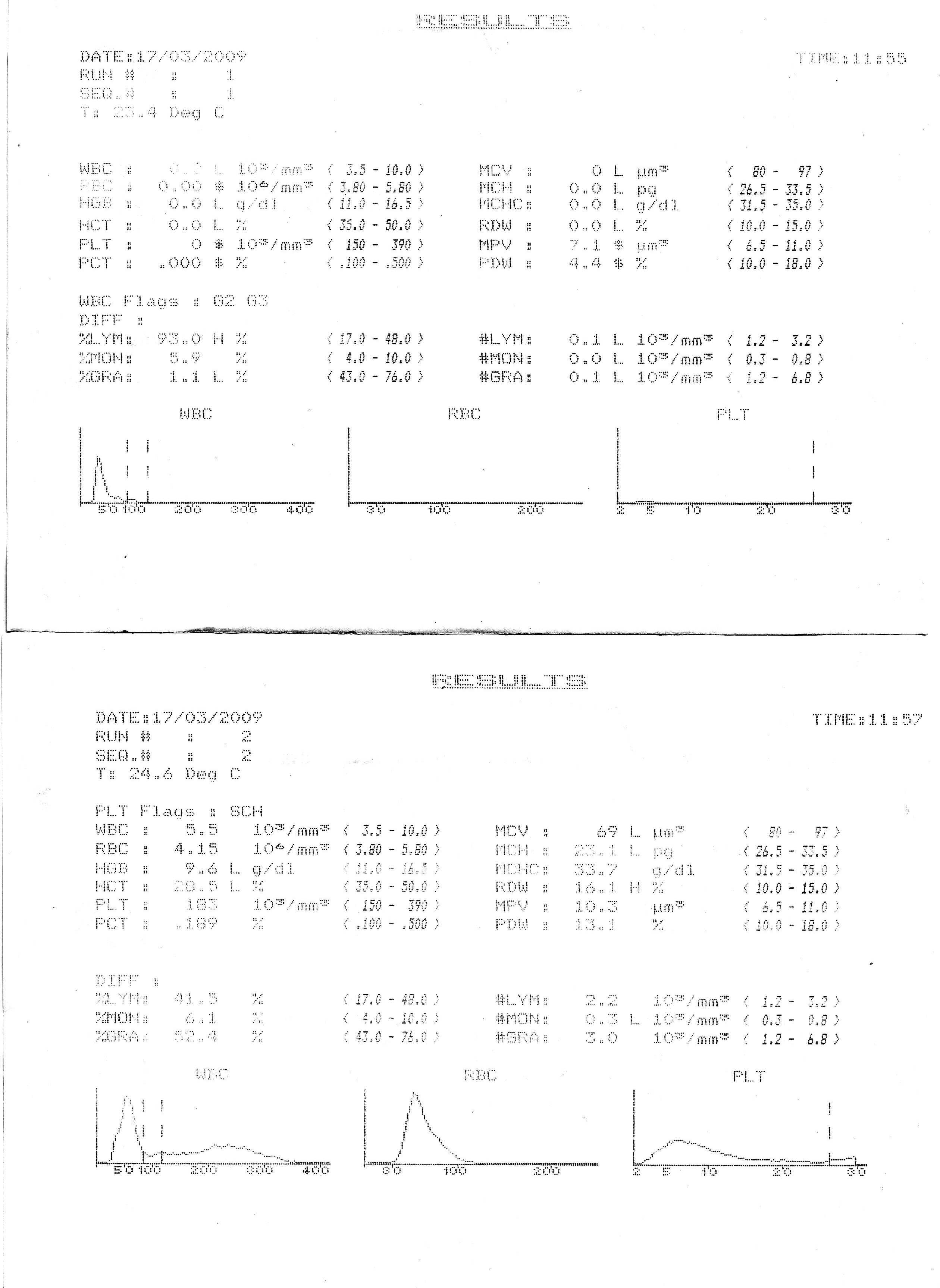 1)измерительные камеры визуально чистые, иногда завышен WBC (больше 0,2) остальные по нулям; 2)реагенты TIMEPAC 4.2 L (sysKLEN, sysLYSE, sysDIL); 3)гистограммы постараюсь завтра сделать